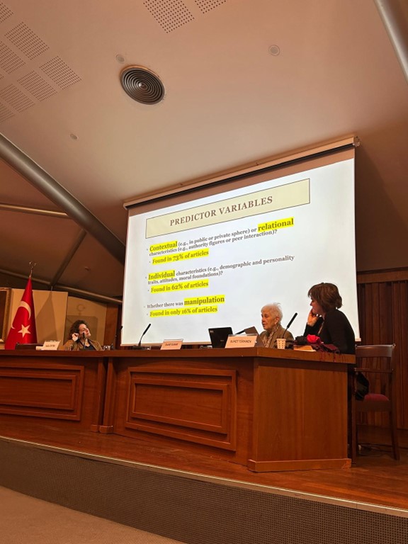 Bu başlıkta bir konferansa elbette konusunun duayeni kabul edilen bir isim olan, "hocaların hocası" Prof. Dr. Diane Sunar ( İstanbul Bilgi Üniversitesi) davet edilmişti ve kendisi İngilizce yaptığı sunuşu "Social Psychology Research in Türkiye: 1990-2020" ile oturuma genel bir başlangıç yaptı. Diane Sunar'ın gelmesini heyecanla karşılayan dinleyiciler, onun sunuşundan Türkiye'de sosyal psikolojinin serencamının izini sürebildiler. Sunar, 1990’lı yıllardan itibaren Türkiye’de yaşanan toplumsal dönüşümlerin, aile yapıları, değerler, kimlik edinme süreçleri ve toplumsal cinsiyet algılarında önemli değişimlere yol açtığını belirtti. Bu dönüşümlerin, sosyal psikoloji araştırmalarında ele alınan sorunsallar ve kullanılan yöntemler üzerinde belirleyici olduğunu vurguladı. Daha önceki dönemlerde Sosyal Psikolojinin önemli bir sorunsalı olan "Benlik" meselesinin terk edildiğini ve toplumsal dönüşümün daha ziyade korelasyon ve istatistiklere dayalı bilimsel metotlarla anlaşılmaya çalışıldığını söyledi. Prof. Sunar sunuşunda ve oturum sonundaki tartışmada, bilime yaklaşımının siyasal alana mesafeli ve tarafsızlığa önem veren bir yaklaşım olduğunun ve bu bilimsel yaklaşımı önemli bulduğunun altını çizdi.